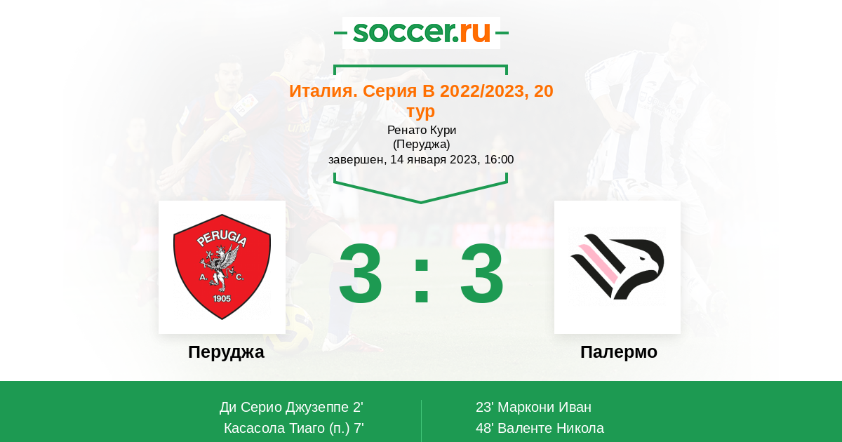 89' (3:3) Брунори Сандри Маттео (9) (Валенте Никола (30))