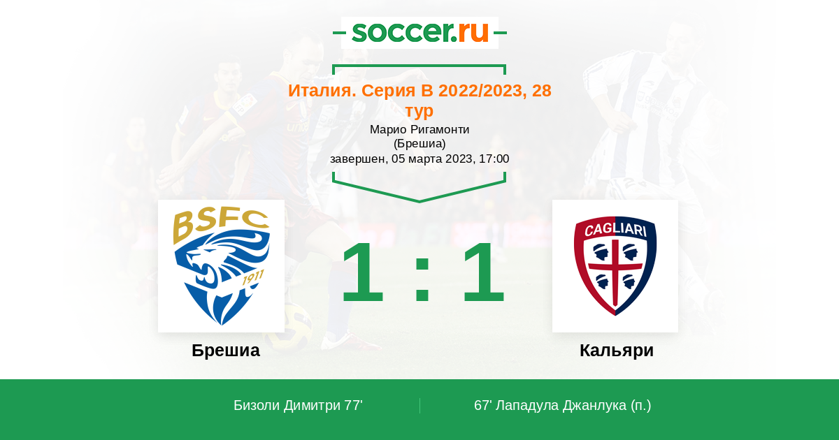 67' (0:1) Лападула Джанлука (9)