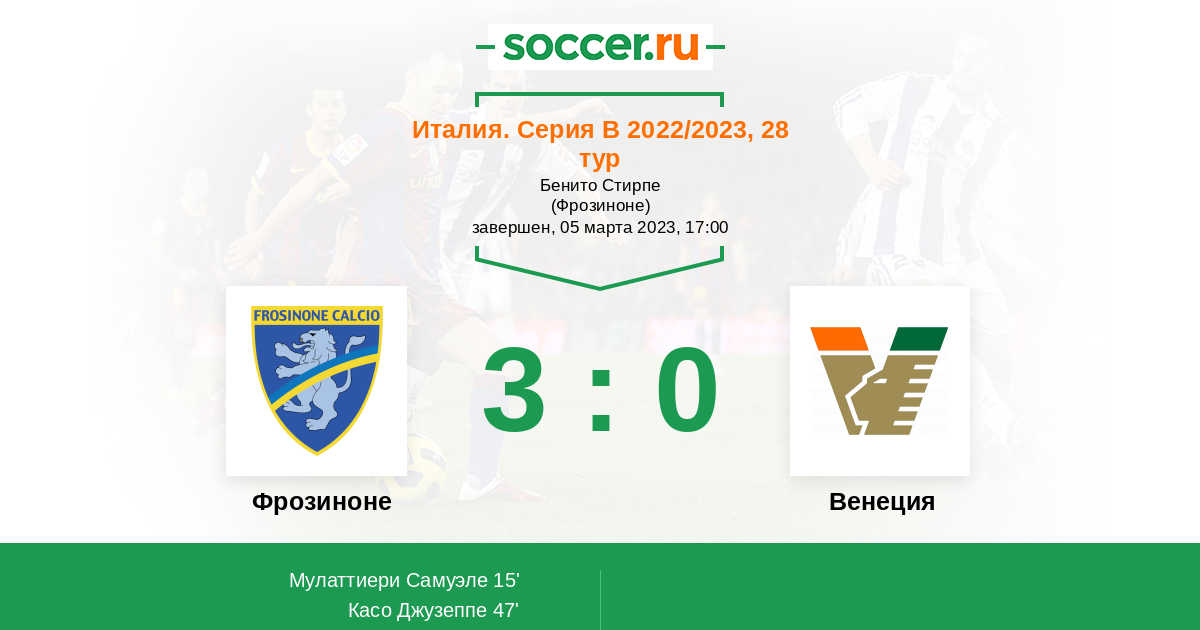 50' (3:0) Мулаттиери Самуэле (9) (Ойоно Овма Торке Энтони (2))