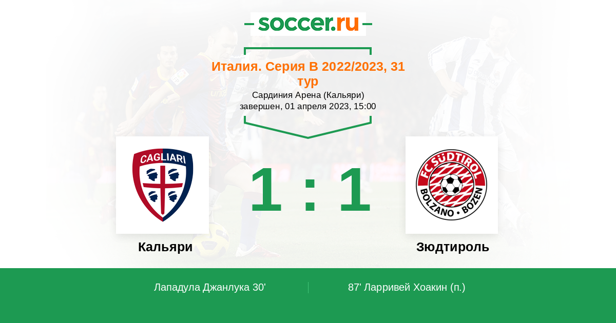 30' (1:0) Лападула Джанлука (9)