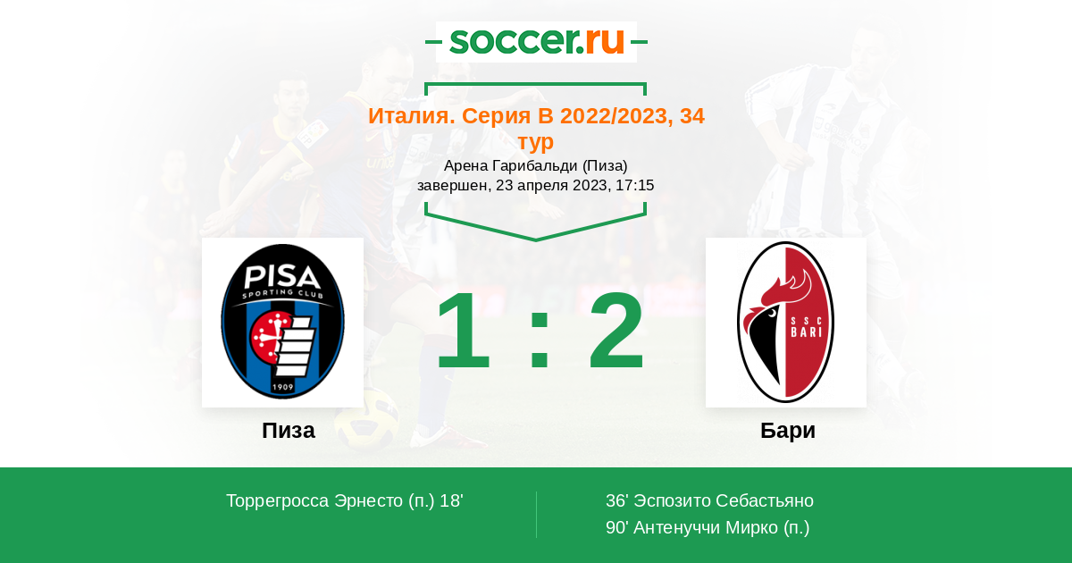 36' (1:1) Эспозито Себастьяно (9) (Морачиоли Грегорио (14))