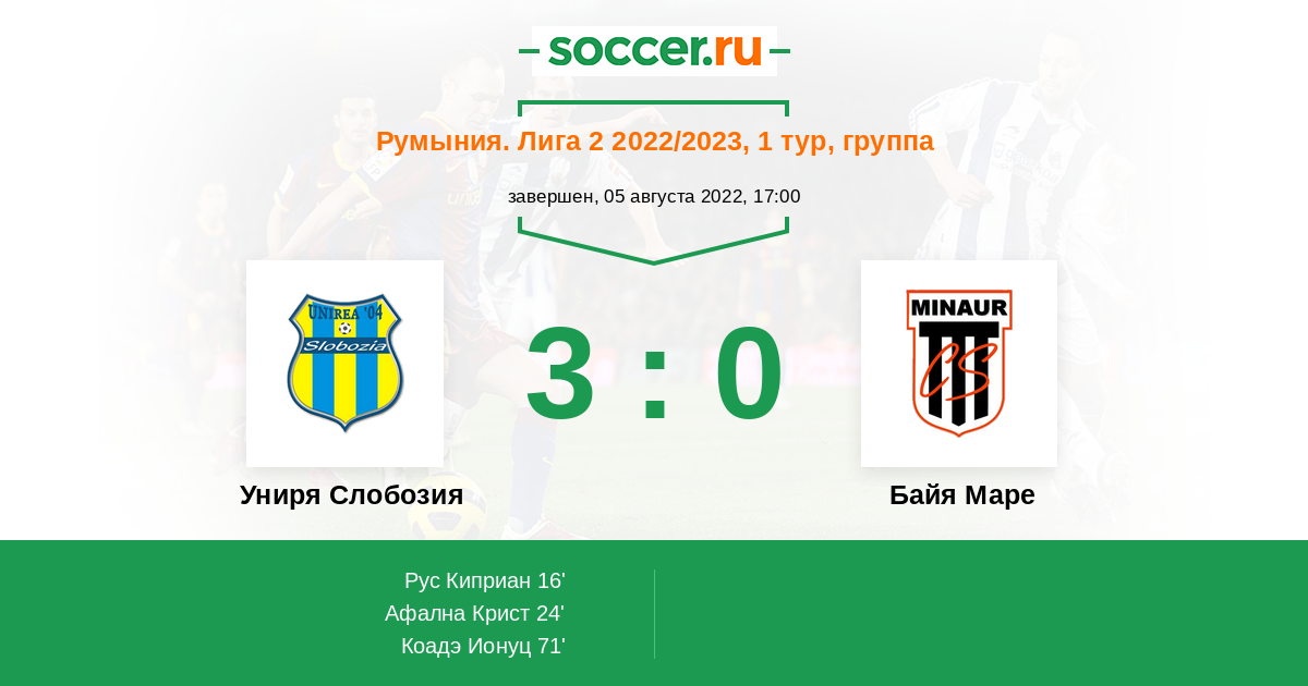 Запасные: Киташ Флорин (с 46'), Бакаре Кевин (с 46'), Лазэр Михай (с 46'), Станеску Андрей (с 60'), Алексе Каталин (с 77')