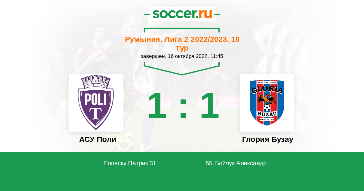 31' (1:0) Попеску Патрик