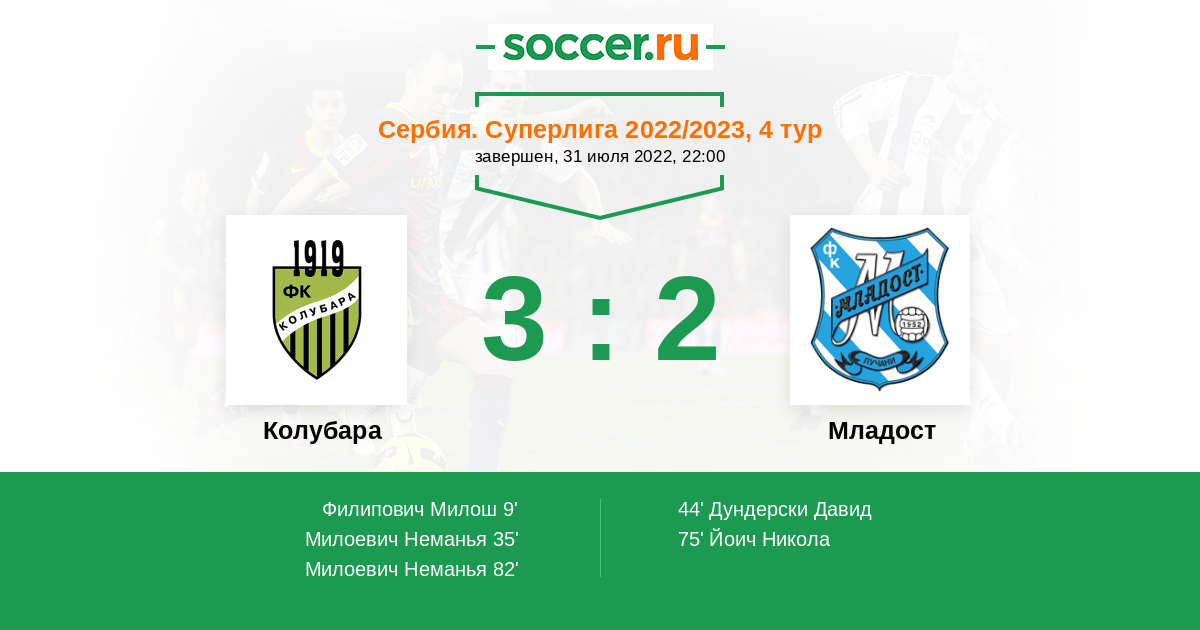 82' (3:2) Милоевич Неманья (23)