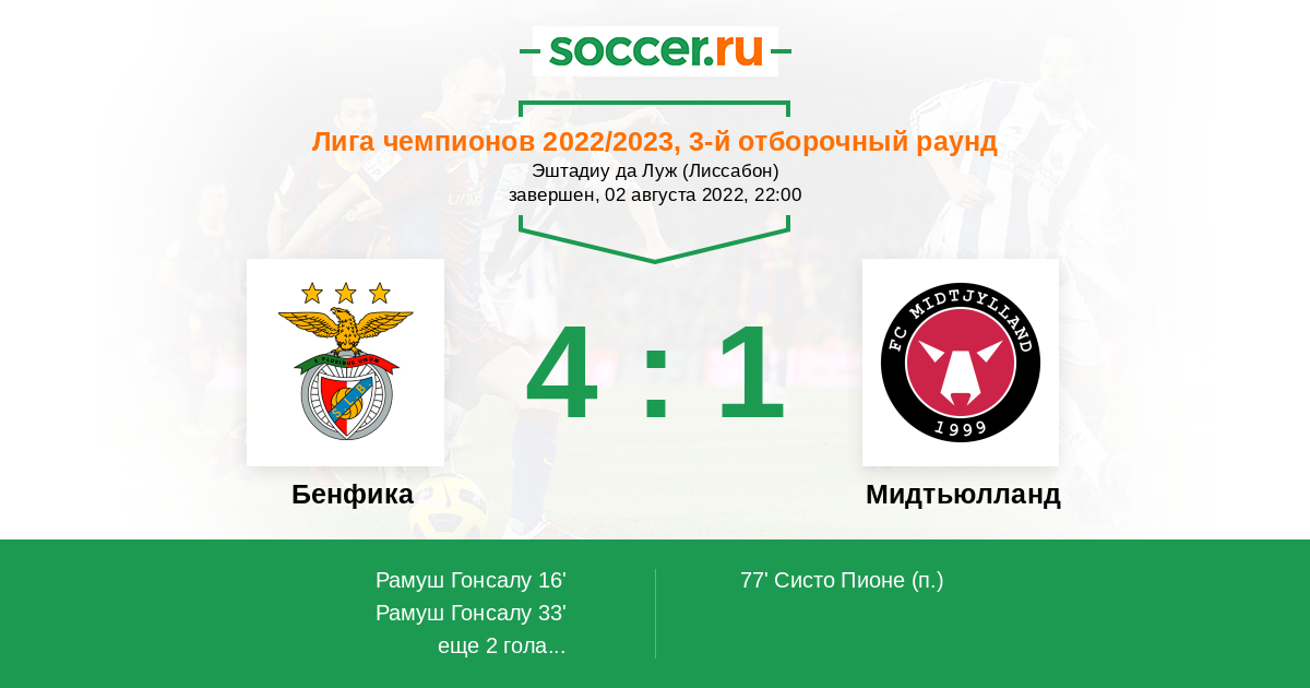 61' (4:0) Рамуш Гонсалу (88) (Силва Рафа (27))