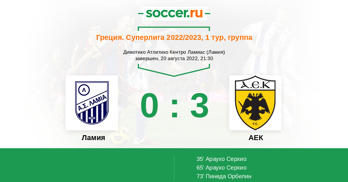 Запасные: 7 Гарсия Ливай (с 76'), 12 Рота Лазарос (с 83'), 24 Митоглу Герасимос (с 83'), 14 Франссон Александр (с 89'), 3 Мохаммади Милад (с 89'), 17 Албанис Христос, 37 Радонья Ведад, 30 Атанасиадис Гиоргос, 77 Гиусис Христос
