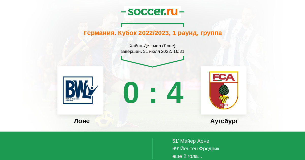 51' (0:1) Майер Арне (10)