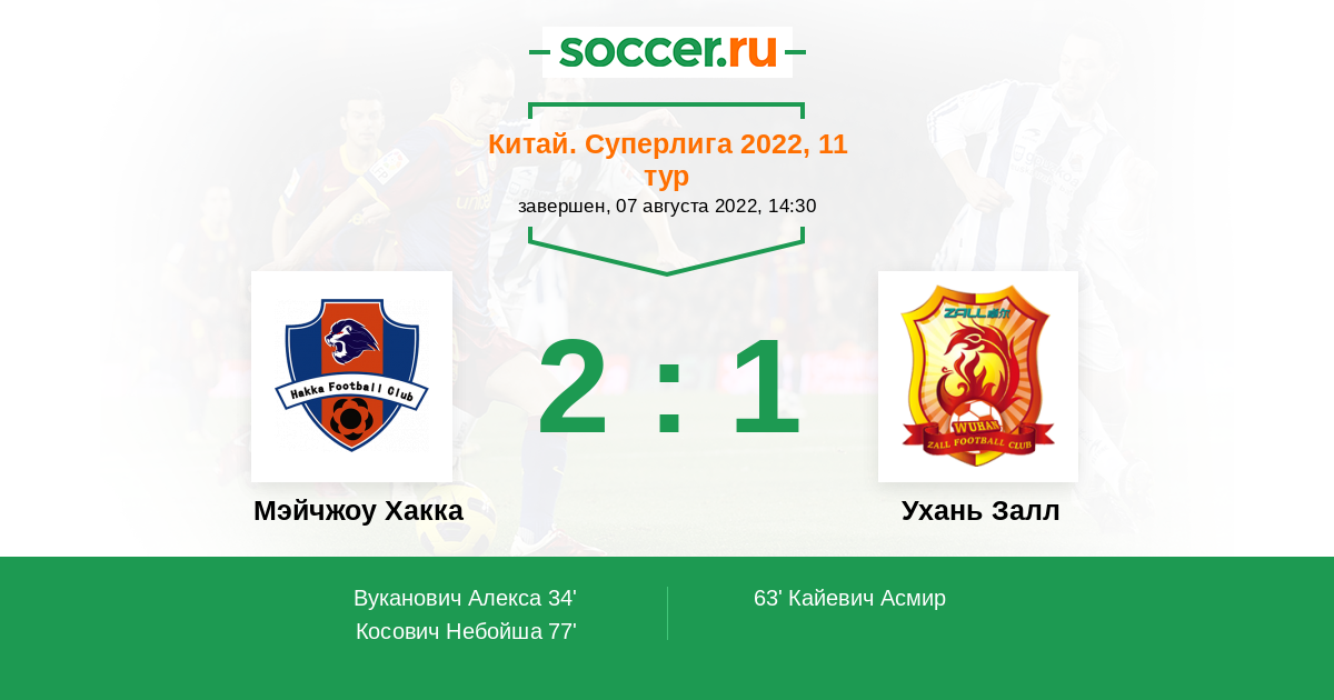 34' (1:0) Вуканович Алекса (9) (Чен Жечао (15))