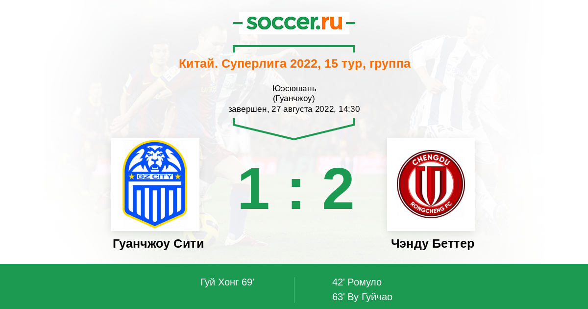 42' (0:1) Ромуло (10) (Ву Гуйчао (15))
