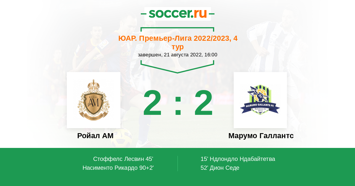 45' (1:1) Стоффелс Лесвин (35) (Потсейн Тебого (11))