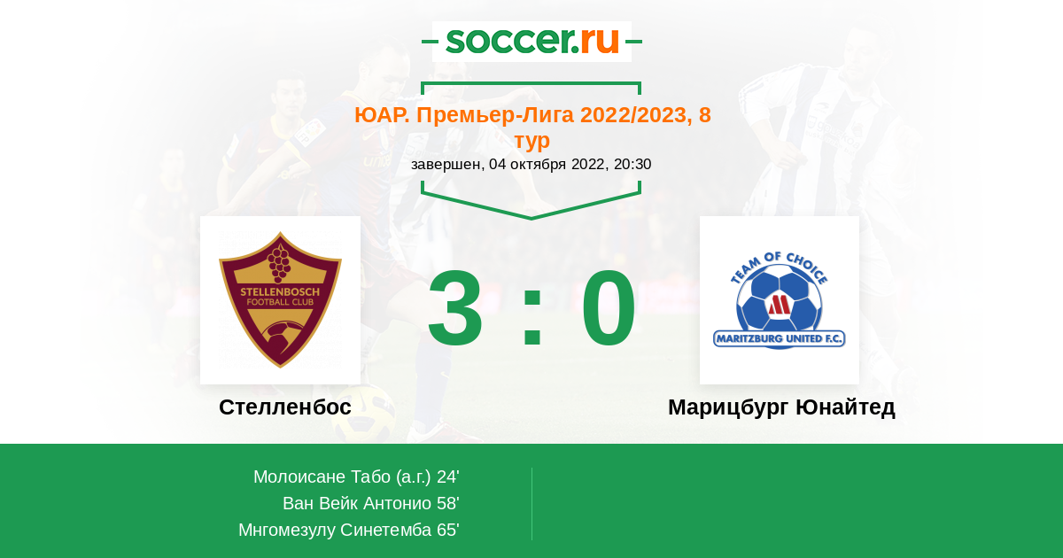 65' (3:0) Мнгомезулу Синетемба (37) (Ван Вейк Антонио (29))