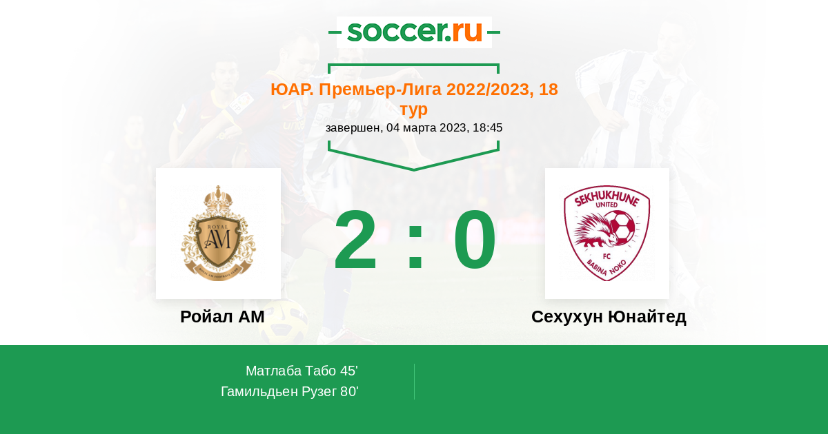 45' (1:0) Матлаба Табо (14) (Могайла Мокете (17))
