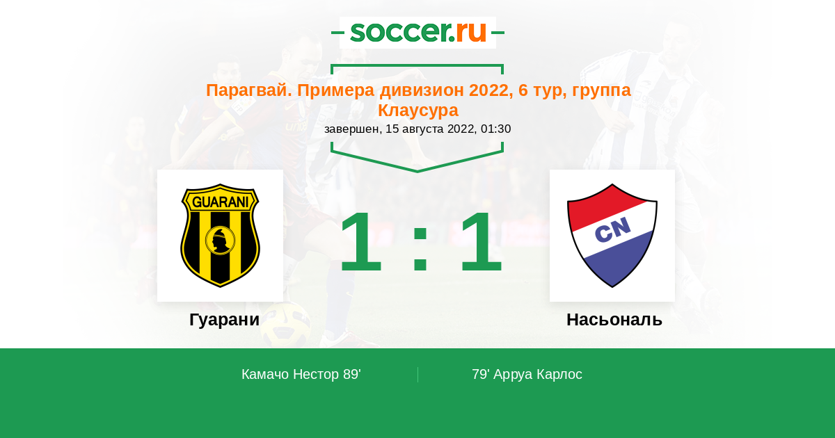 89' (1:1) Камачо Нестор (7) (Контрера Альберто (40))