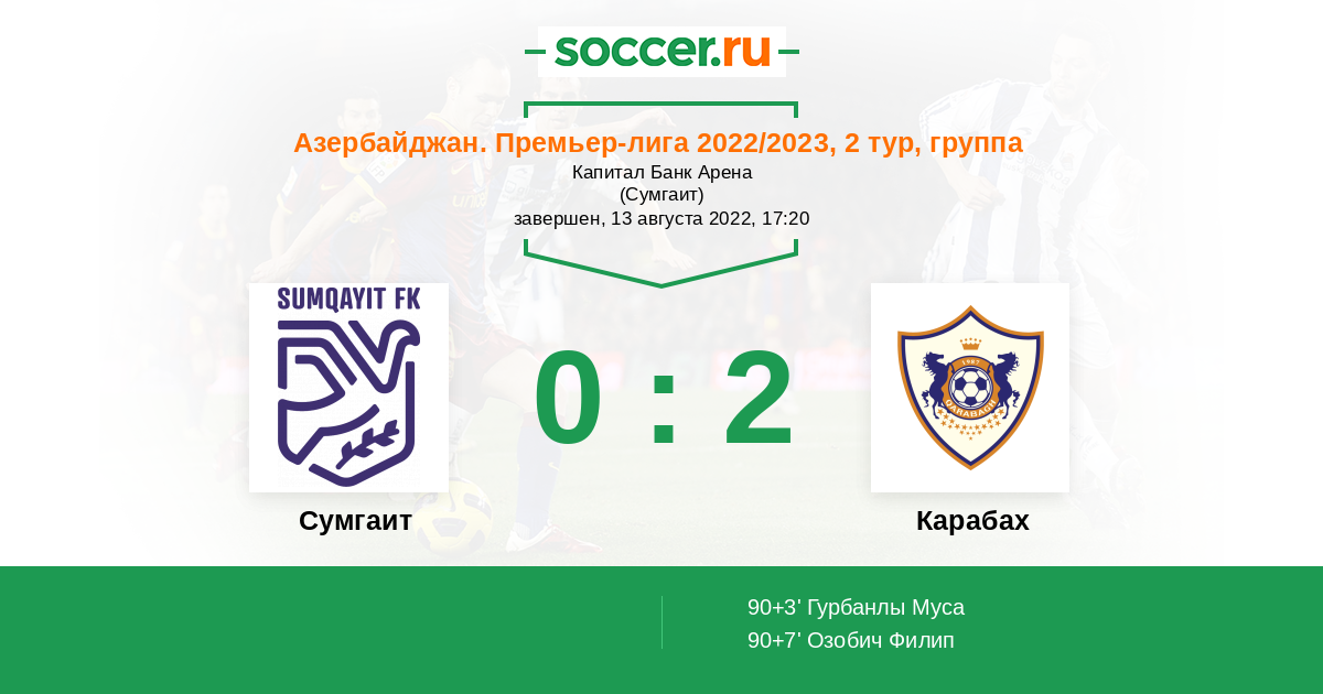 Запасные: 18 Ахмадов Сулейман (с 46'), 30 Филипе Шаби (с 58'), 37 Туре Аля (с 64'), 15 Байбалаев Вугар (с 76'), 3 Гусейнов Вургун, 20 Сулейманли Айхан, 21 Ахмадзаде Нихад, 24 Абдуллаев Эльшан, 25 Валиев Илнур, 36 Фарзуллаев Ксаял, 55 Элиев Ибрагим