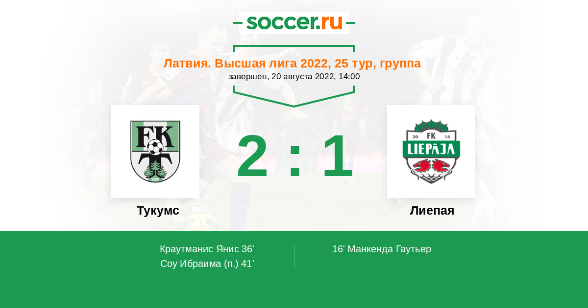 Запасные: 9 Самойловс Богданс (с 62'), 17 Сванс Кристерс (с 80'), 11 Анманис Каспарс (с 87'), 21 Пузановс Кристапс (с 87'), 3 Круглауш Маркуш, 7 Зелтинш Дэвис, 10 Гоми Икоту, 12 Саулитис Хельмут, 8 Сталс Мартинс
