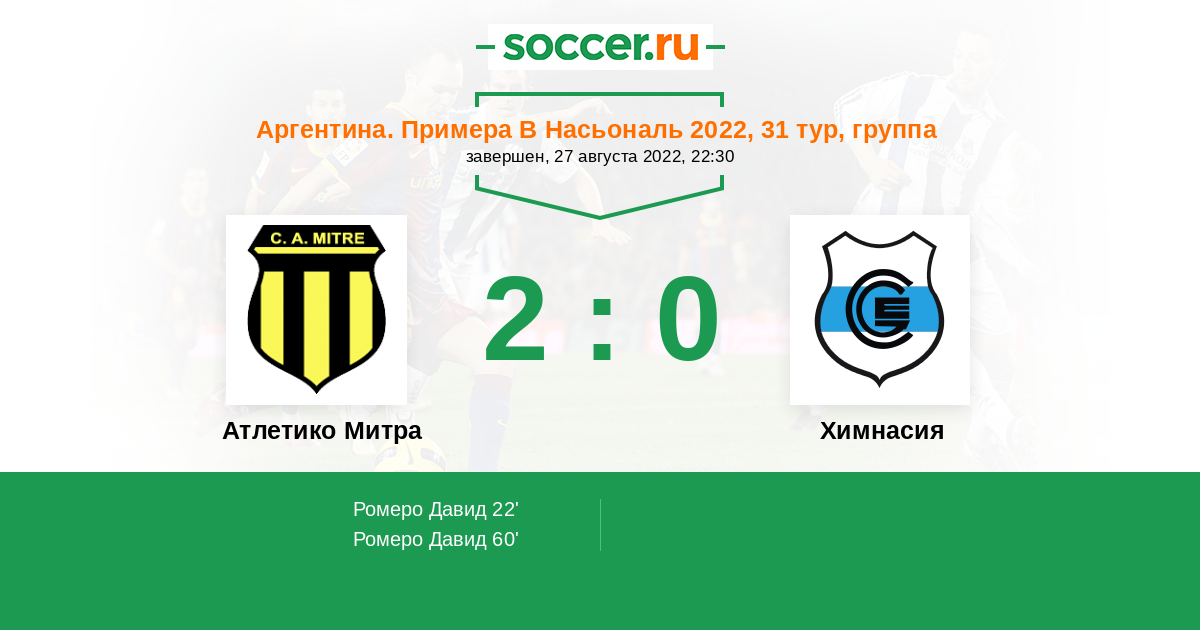 22' (1:0) Ромеро Давид