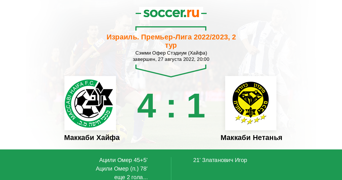 Запасные: 10 Беркович Амир (с 62'), 18 Итжак Гил (с 62'), 26 Жабер Карем (с 62'), 9 Охана Майкл (с 73'), 99 Азулай Эйтан (с 73'), 3 Келлер Ротем, 13 Карми Раз, 23 Ашкенази Юваль, 28 Мола Андеша