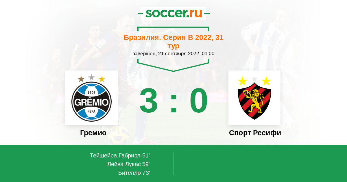 51' (1:0) Тейшейра Габриэл (17) (Соуза Диего (29))