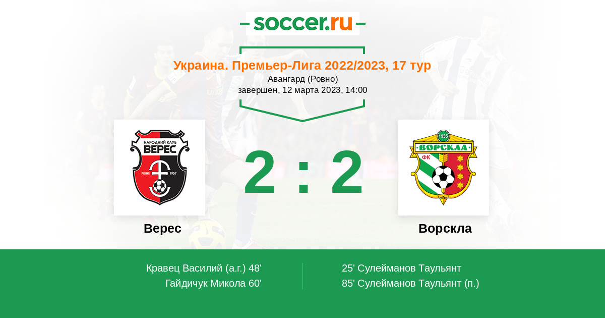 48' (1:1) Автогол Кравец Василий (3)