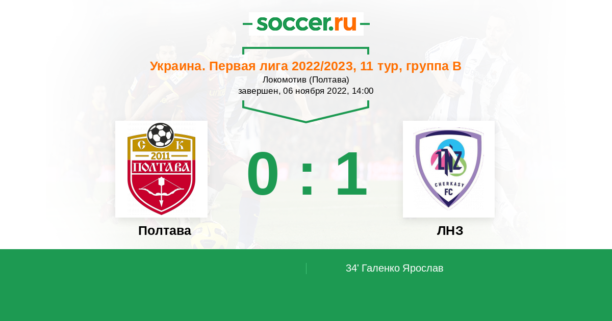 34' (0:1) Галенко Ярослав