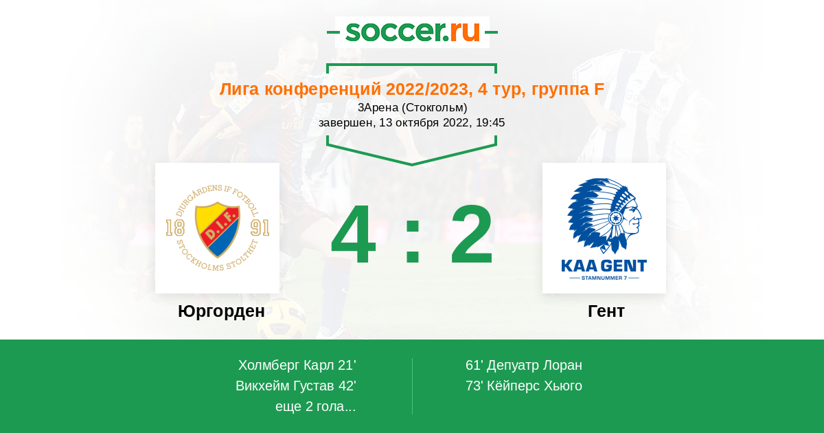 42' (2:0) Викхейм Густав (23) (Эрикссон Магнус (7))
