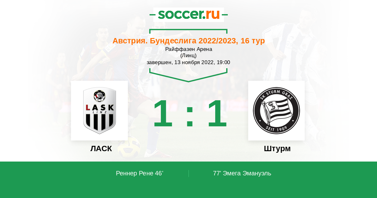 46' (1:0) Реннер Рене (7)