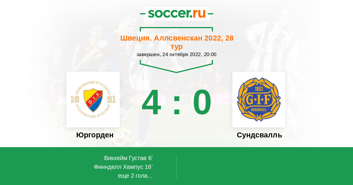 16' (2:0) Финнделл Хампус (13) (Андерссон Элиас (8))