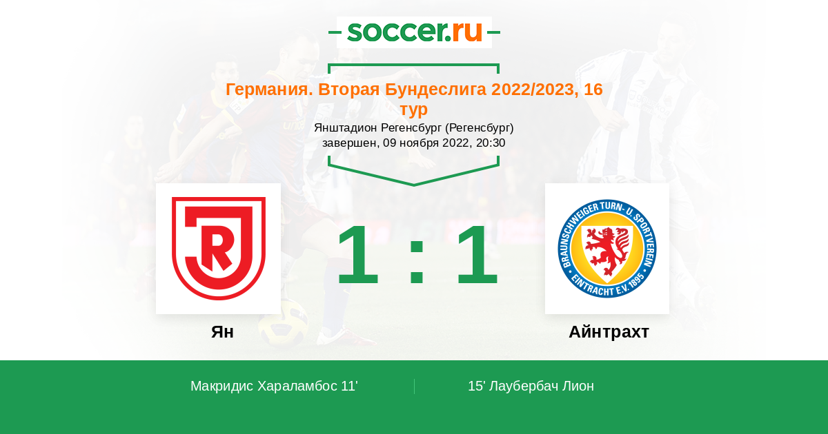15' (1:1) Лаубербач Лион (20) (Крауссе Робин (39))