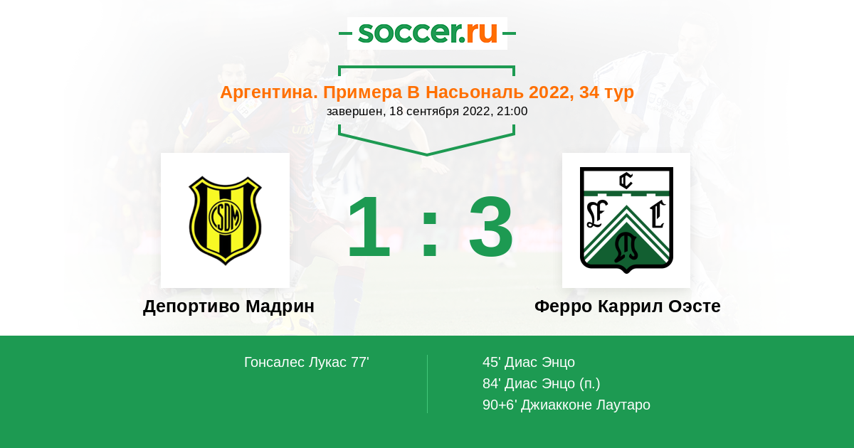 Депортиво Мадрин - Ферро Каррил Оэсте