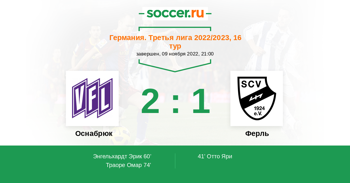 60' (1:1) Энгельхардт Эрик (9) (Беерман Тимо (33))