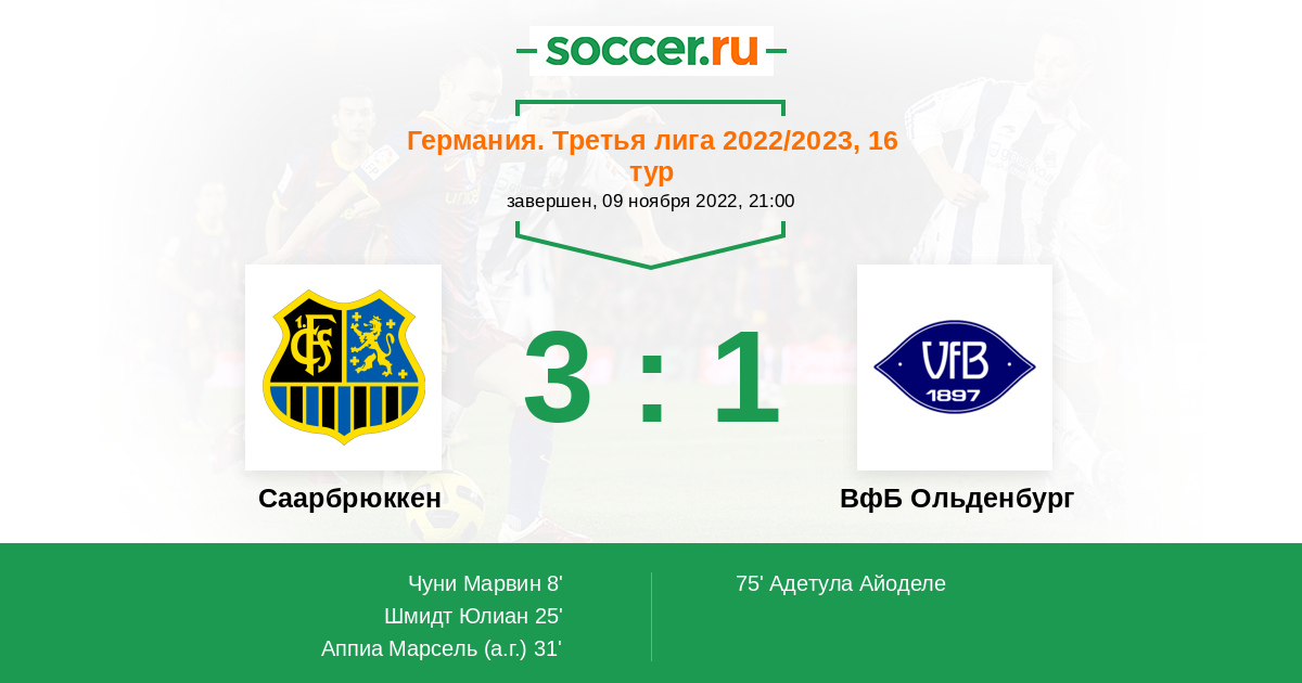8' (1:0) Чуни Марвин (9) (Шмидт Юлиан (20))
