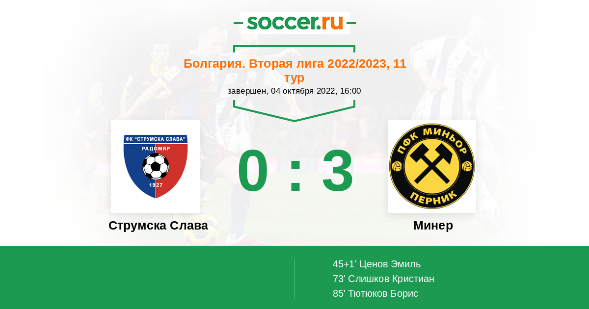 45+1' (0:1) Ценов Эмиль
