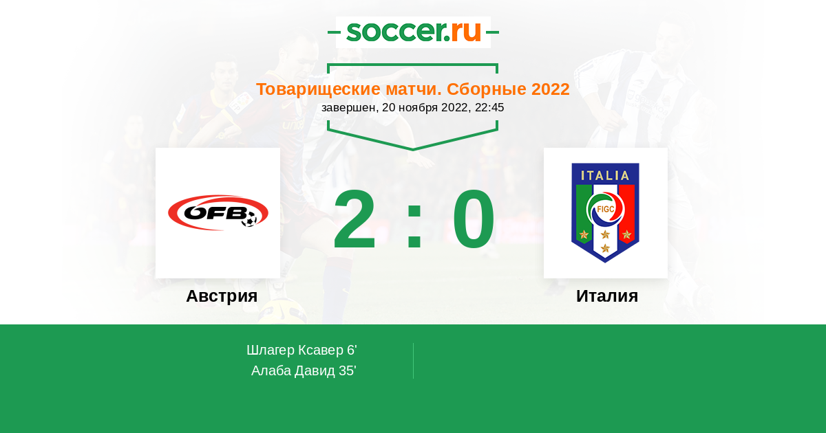 6' (1:0) Шлагер Ксавер (4) (Арнаутович Марко (7))