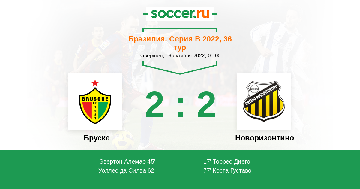 45' (1:1) Эвертон Алемао (4) (Родолфо Потигуар (5))
