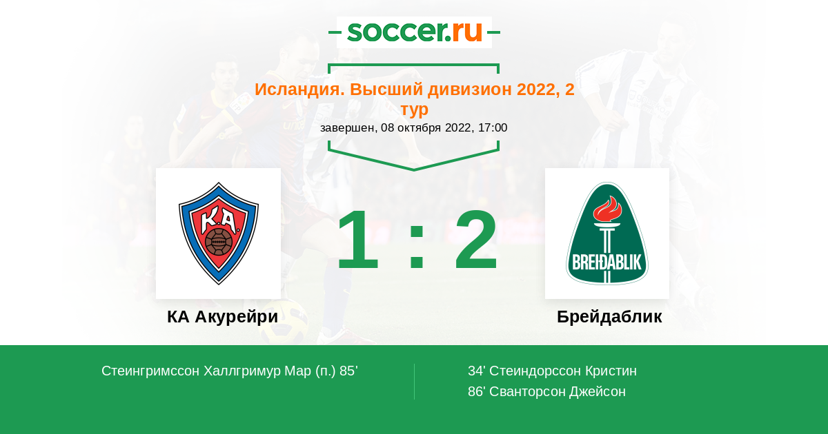 86' (1:2) Сванторсон Джейсон (14) (Торвалдссон Исак (22))