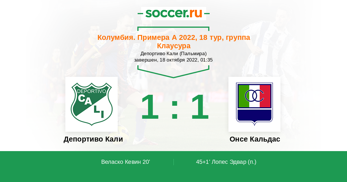 20' (1:0) Веласко Кевин (21) (Кортес Сантьяго (5))