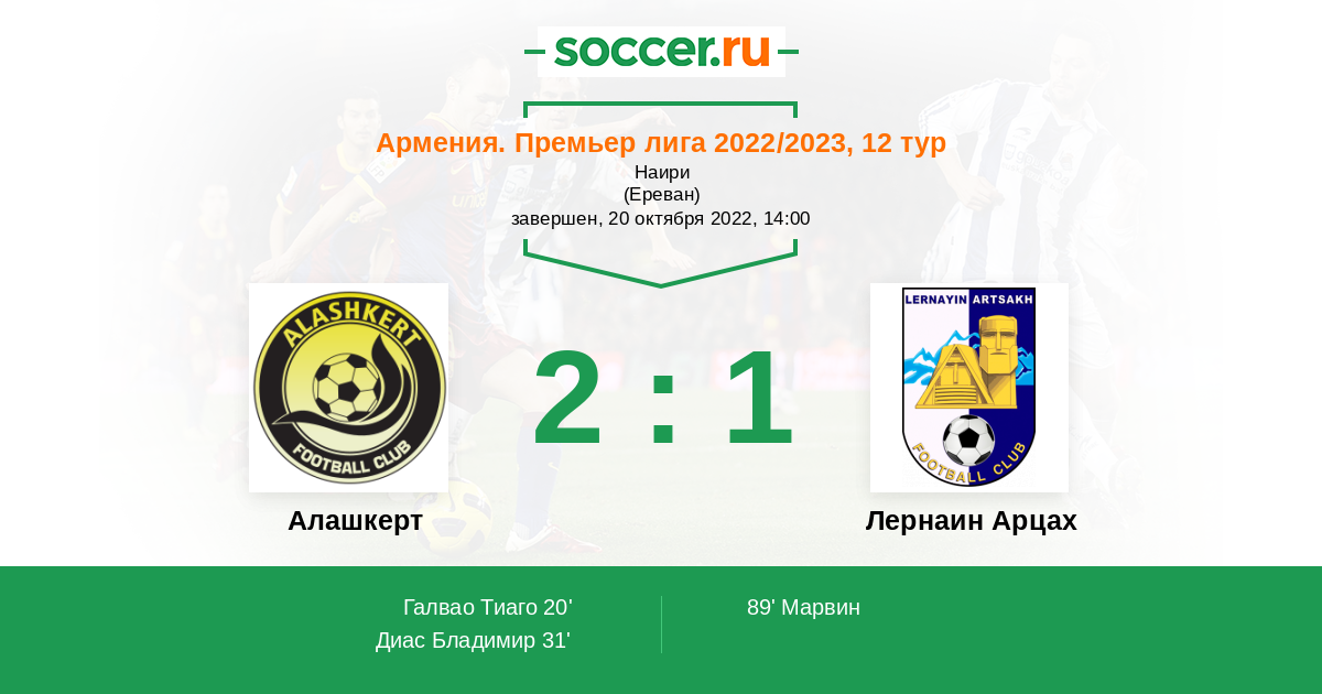 20' (1:0) Галвао Тиаго