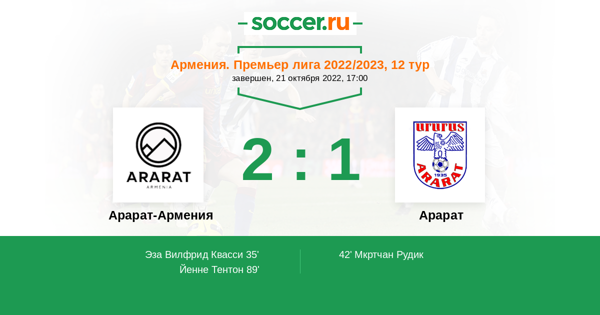 Запасные: Амбарцумян Армен (с 63'), Угу Филипе (с 63'), Ангуло Вбеймар (с 63'), Казарян Геворг (с 80'), Жидима Акила (с 88'), Оганесян Арман, Абакумов Дмитрий, Тертерян Давид, Хачатрян Хайк, Ромерсио, Мкртчян Степа, Удо Соломон Име