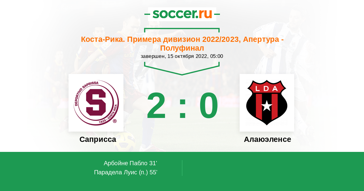 Запасные: Алкокер Хосимар (с 70'), Лопес Яэль (с 70'), Блэкберн Роландо (с 86'), Альфаро Бернальд, Куберо Хосе Мигель, Аху Мигел, Родригес Себастьян