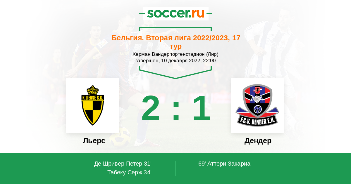 31' (1:0) Де Шривер Петер (2) (Табеку Серж (30))