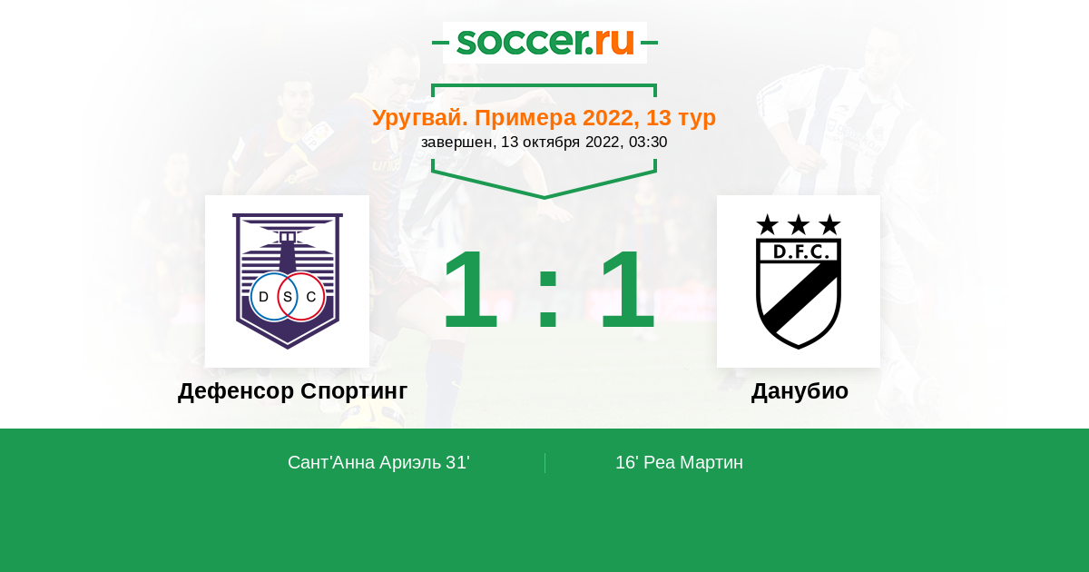 16' (0:1) Реа Мартин (21) (Эрнандес Эмануэль (4))