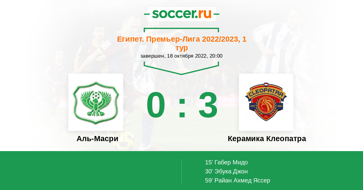 15' (0:1) Габер Мидо (27) (Шокри Мохамед (3))