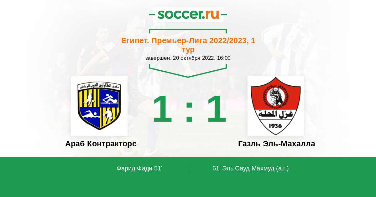 61' (1:1) Автогол Эль Сауд Махмуд (1)