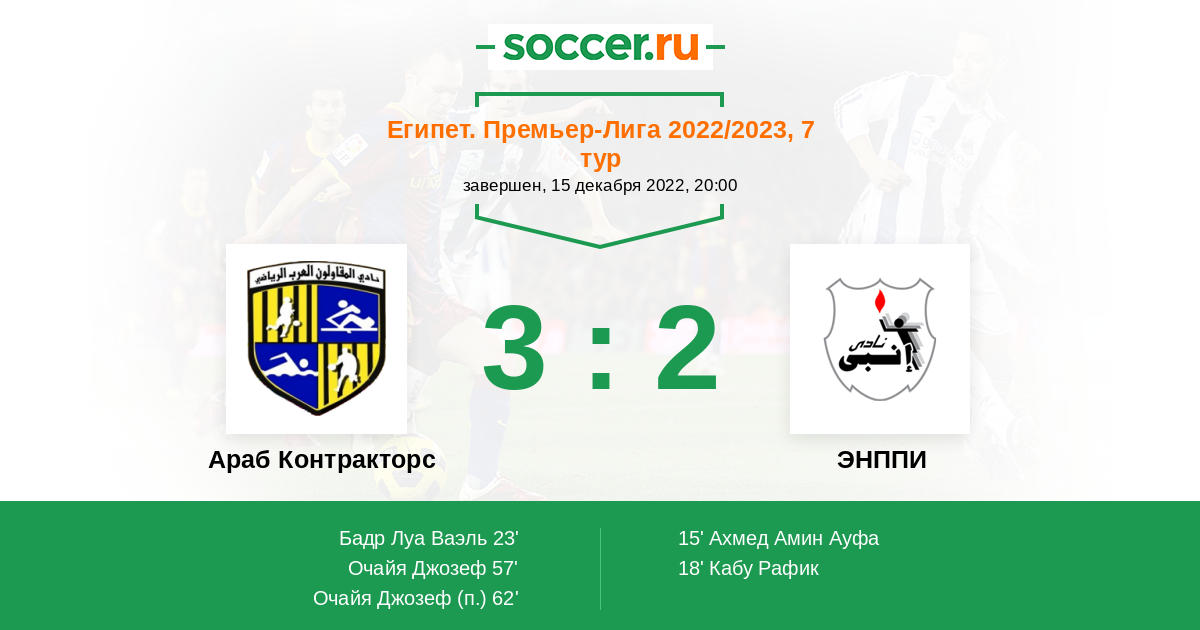57' (2:2) Очайя Джозеф (23) (Халед Абдельрахман (14))