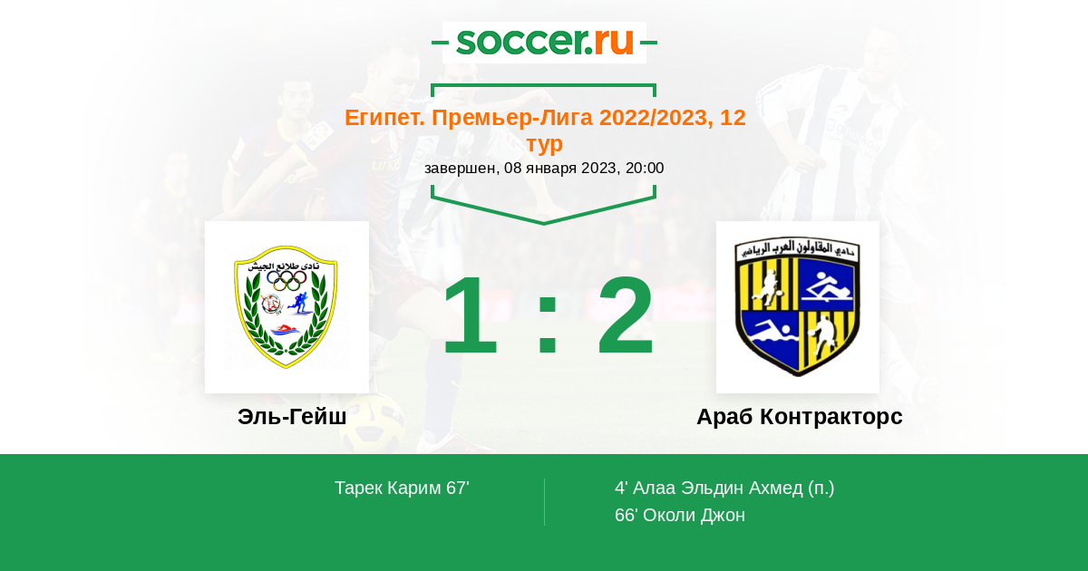 67' (1:2) Тарек Карим (11) (Камар Халед (9))