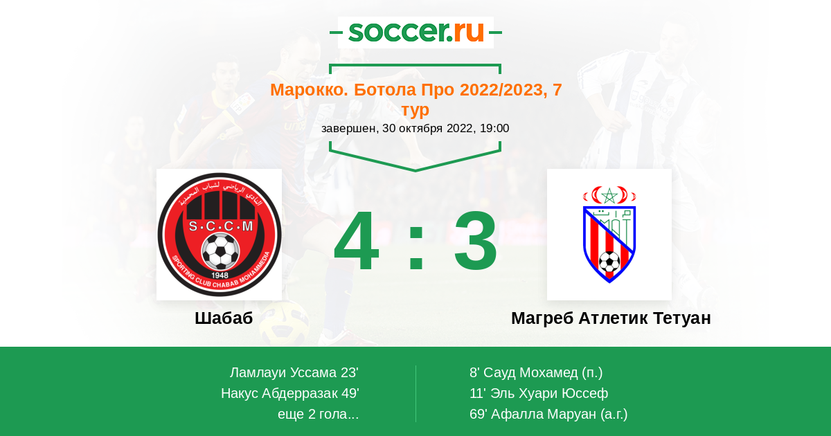 Запасные: 20 Афалла Маруан (с 57'), 55 Мулхами Анас (с 76'), 10 Зила Маруан (с 82'), 2 Эррахли Хамза, 9 Ишаране Салахеддин, 12 Тидиане Думбуя, 16 Фатхи Ахмед, 17 Нассик Закария, 99 Маджид Мохтар