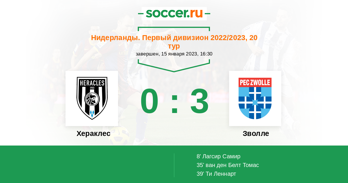 8' (0:1) Лагсир Самир (21) (Ти Леннарт (9))