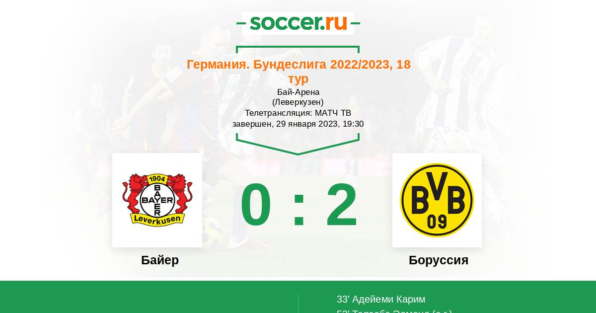 33' (0:1) Адейеми Карим (27) (Брандт Юлиан (19))