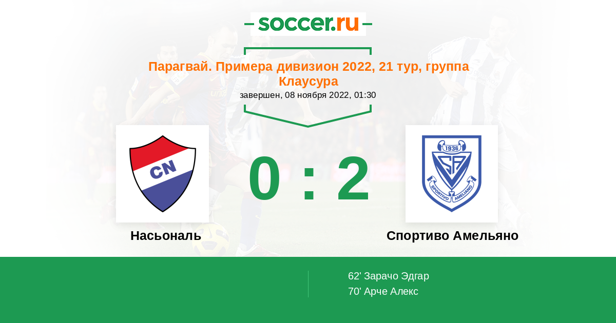 62' (0:1) Зарачо Эдгар (6) (Саркис Элиас (7))