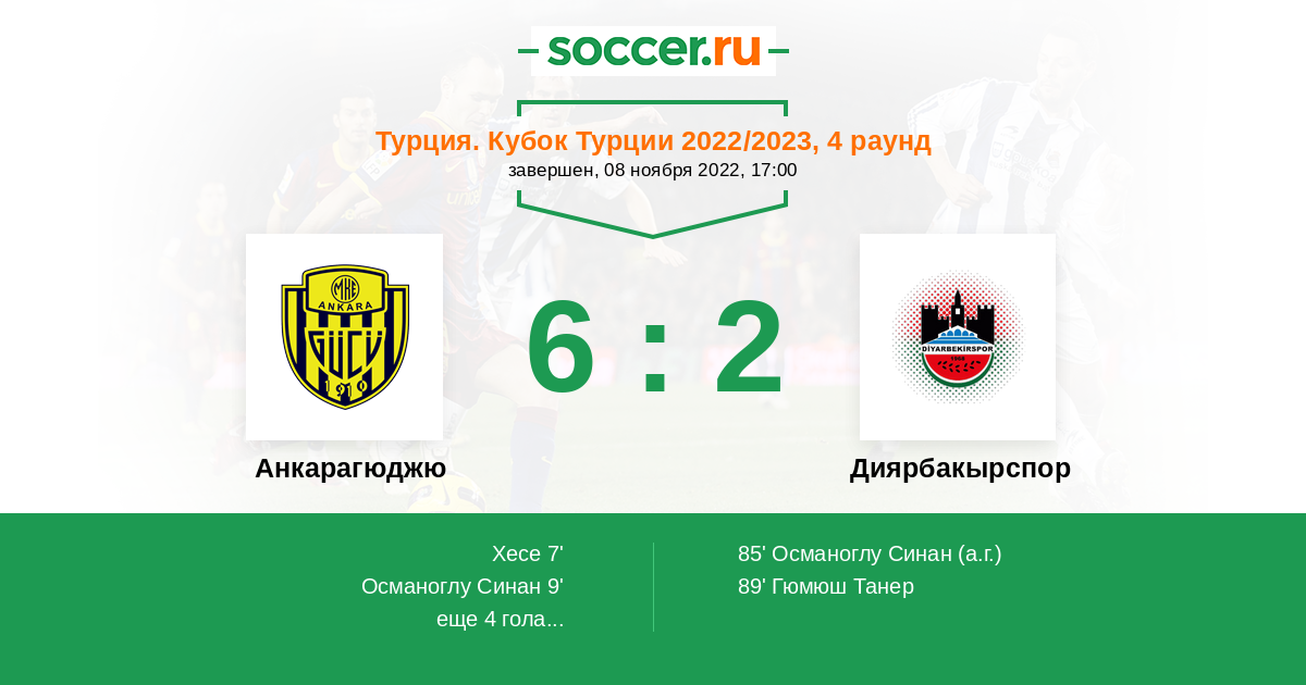 85' (6:1) Автогол Османоглу Синан (90)